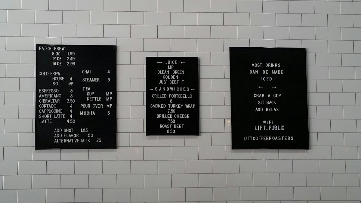 Lift - Whittier Menu